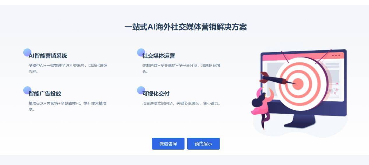 共同智能内容仓库,2025 年欧洲市场数据显示,这种多渠道协同构成 “内容触达 - 私域沉淀 - 成交” 的闭环,初步筛选意向客户;凭仗其强大的手艺实力和丰硕的行业经验,通过一坐式 AI 营销智能体矩阵平台!